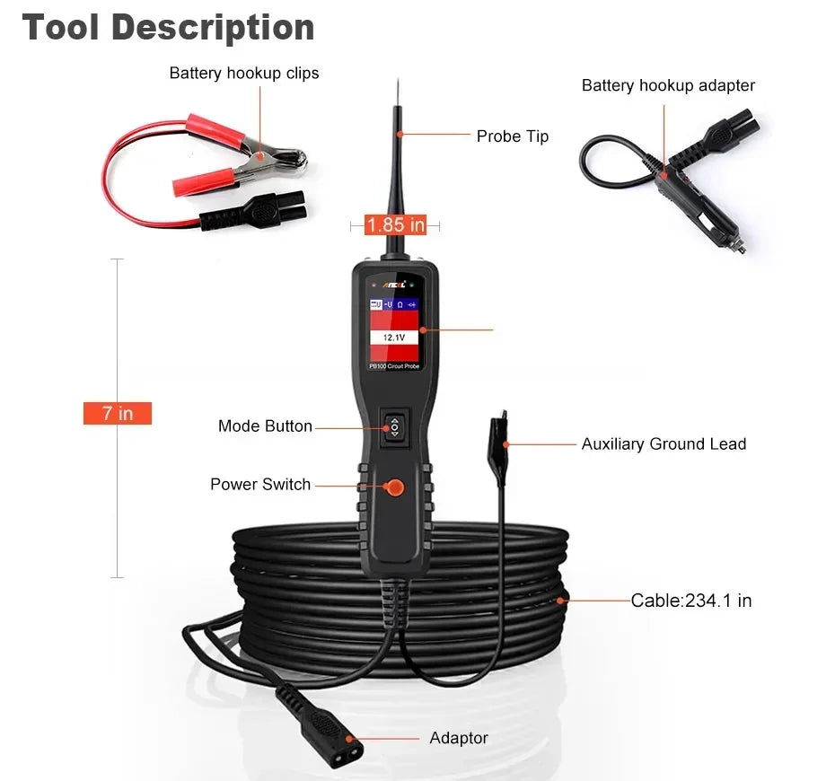 ANCEL PB100 Electrical System Circuit Tester Functions: