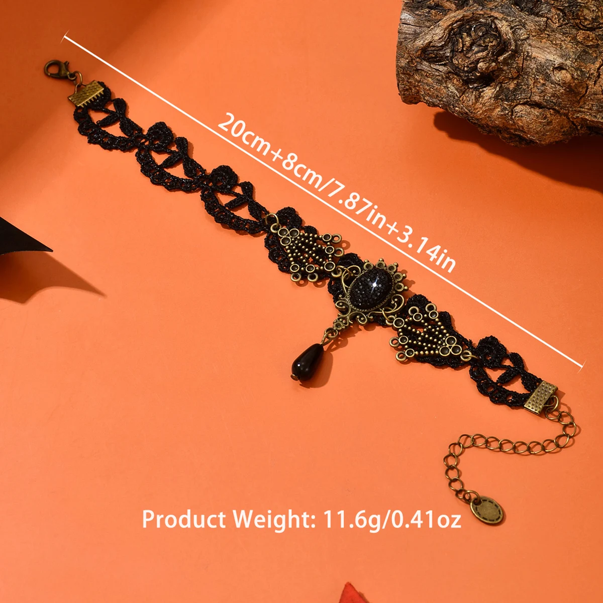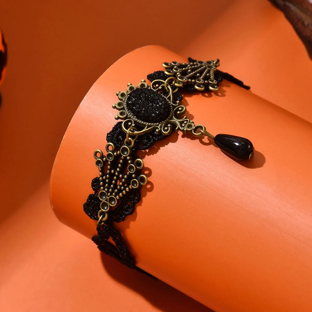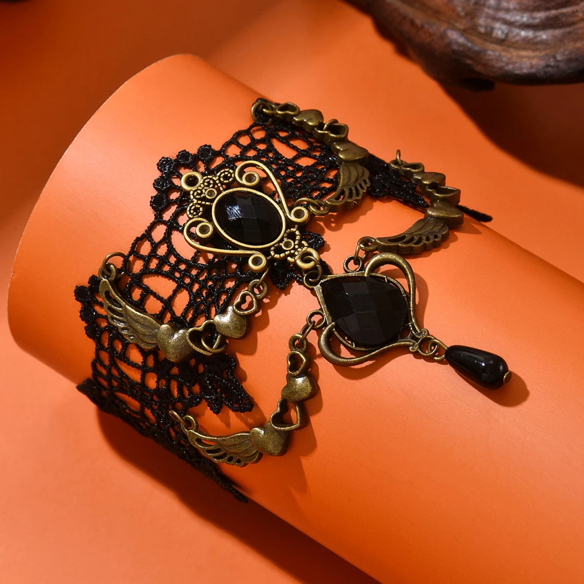 Halloween Black Lace Design Retro Personality Dark Gothic Style Bracelet for Women