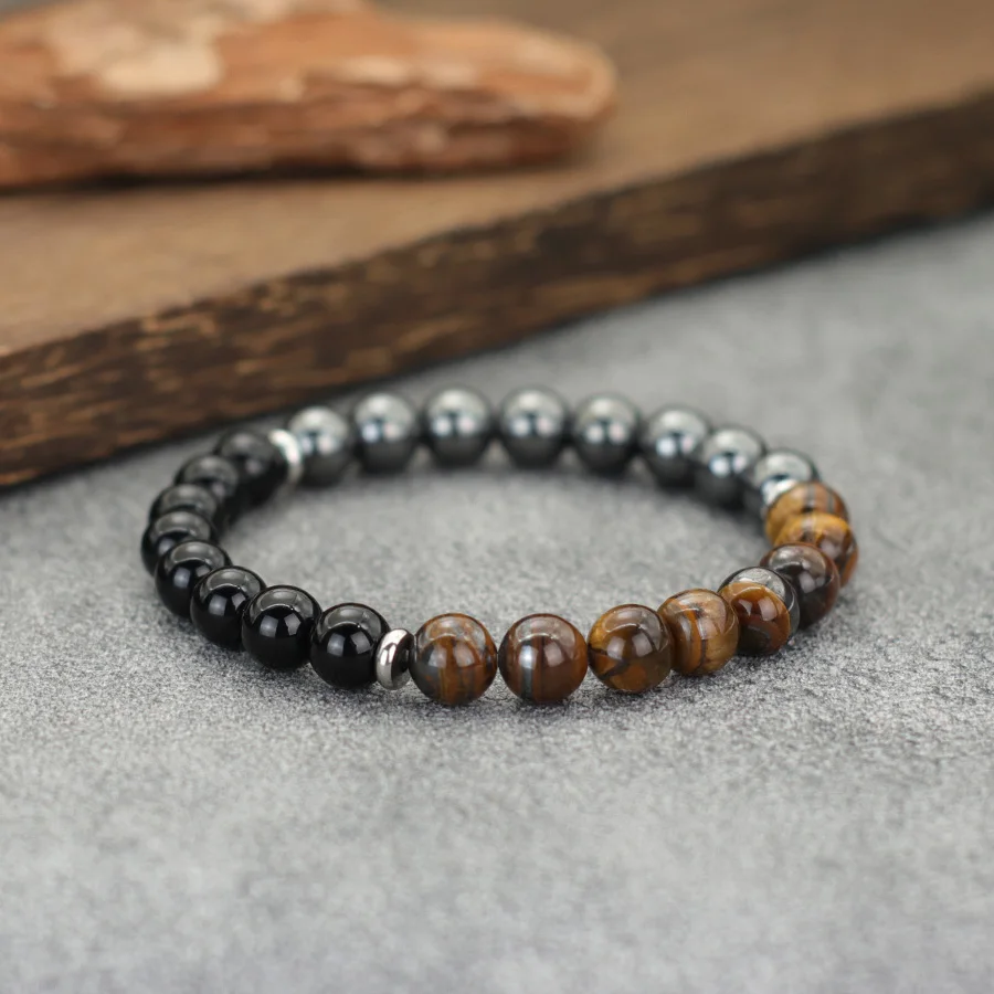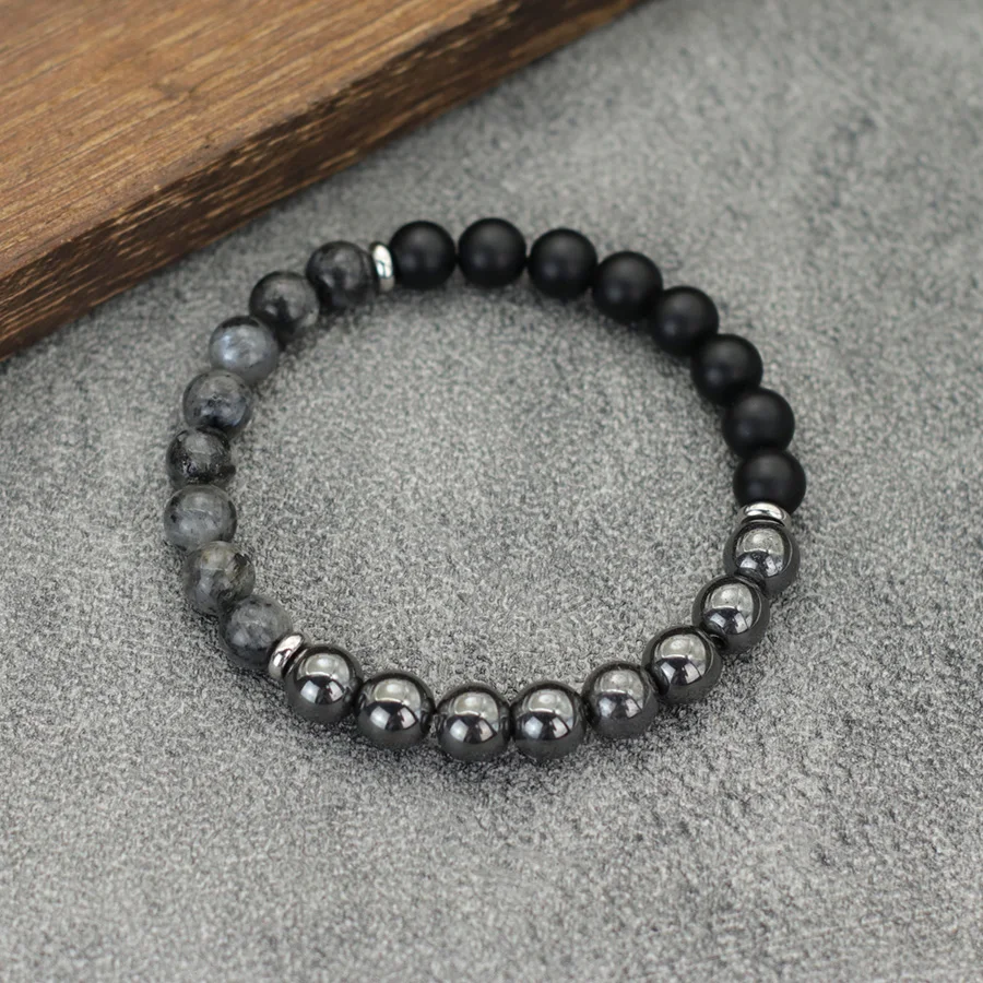 Handmade Beaded Three Natural Stone Beads Mix and Match Bracelet Matte Map Stone Hematite Charms Beaded Stretch Braclet