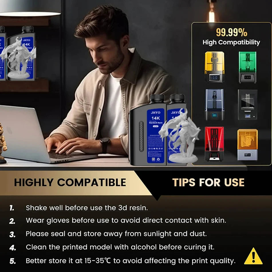 7.【Wide range of application】: JAYO ABS-Like Resin is specially designed for LCD 3D printing. It is also compatible with DLP/SLA 3D printing and other resin printers.