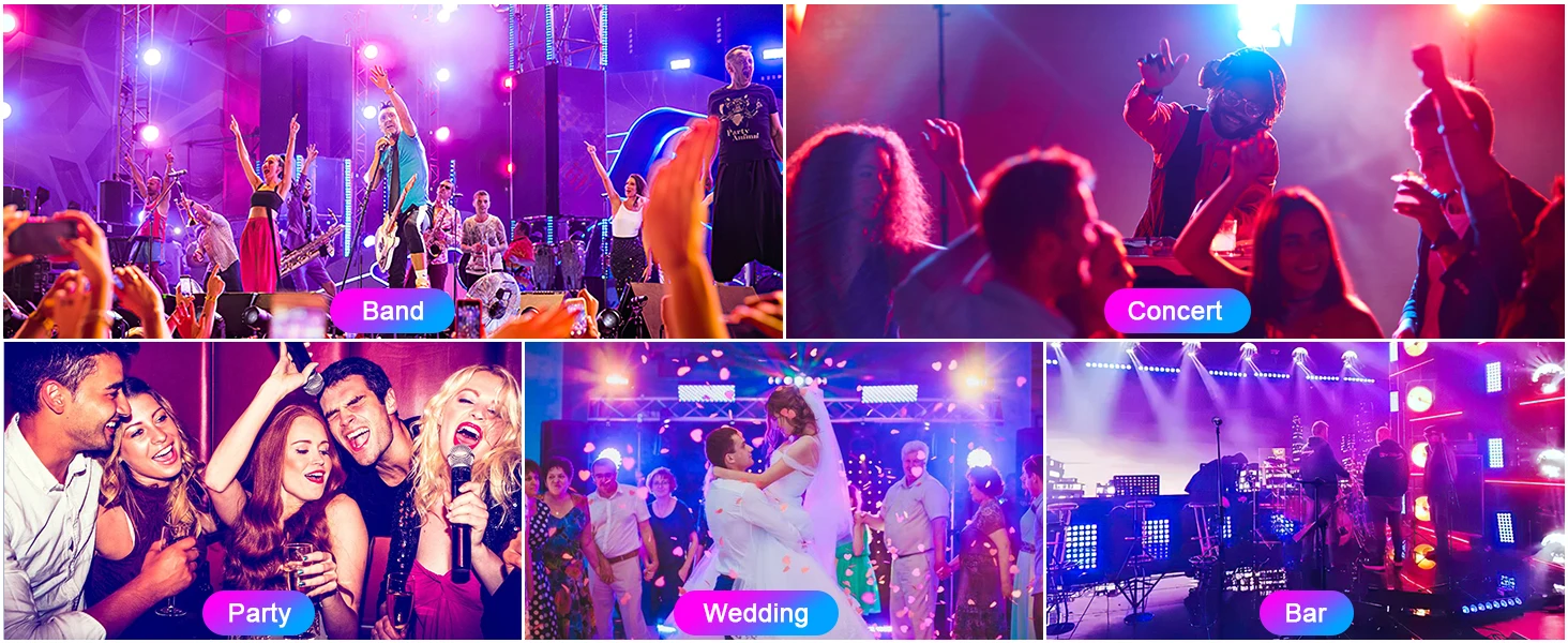 Suitable for DJ, performance, concert, nightclub, party, bar, KTV, dance hall, etc, to increase the dynamic atmosphere.