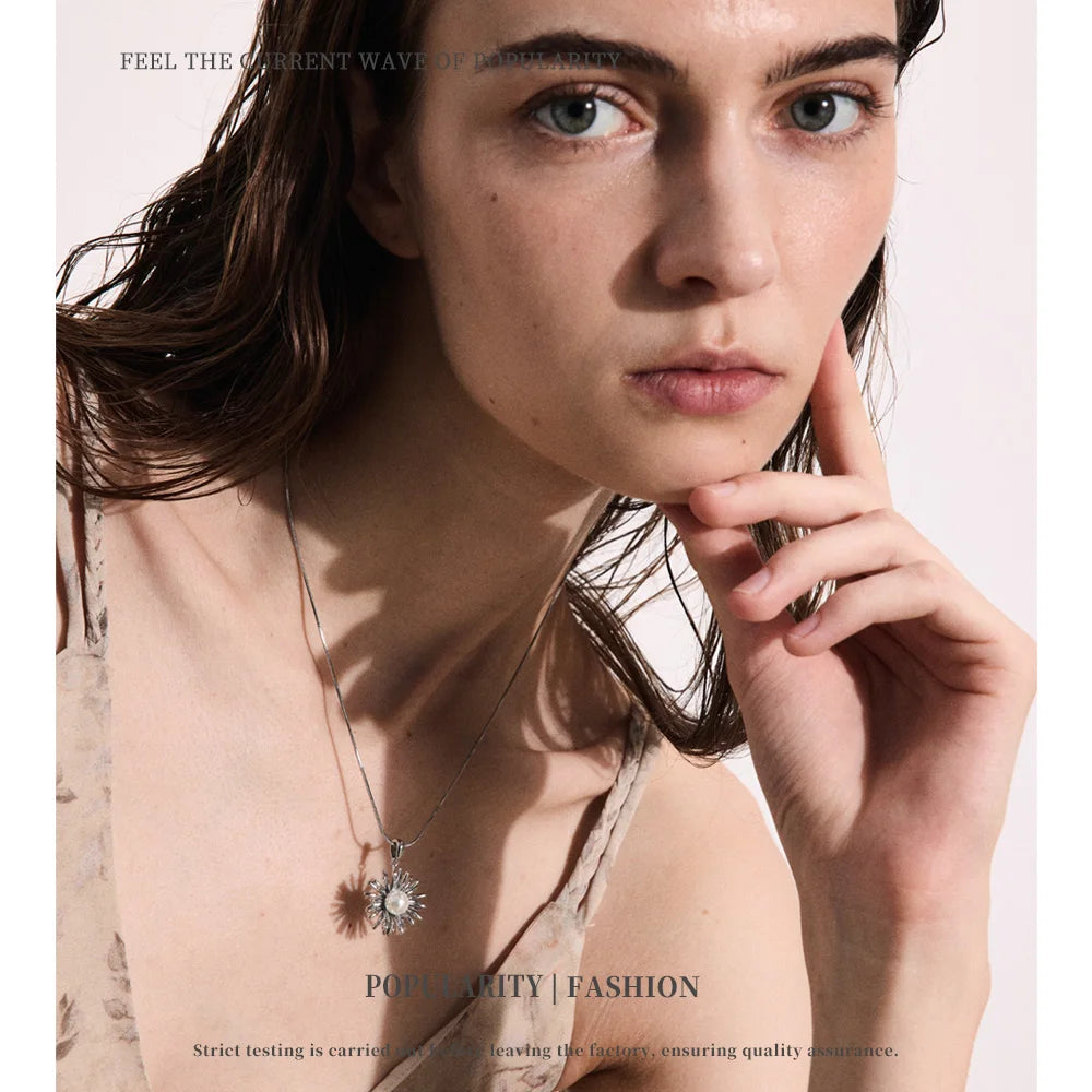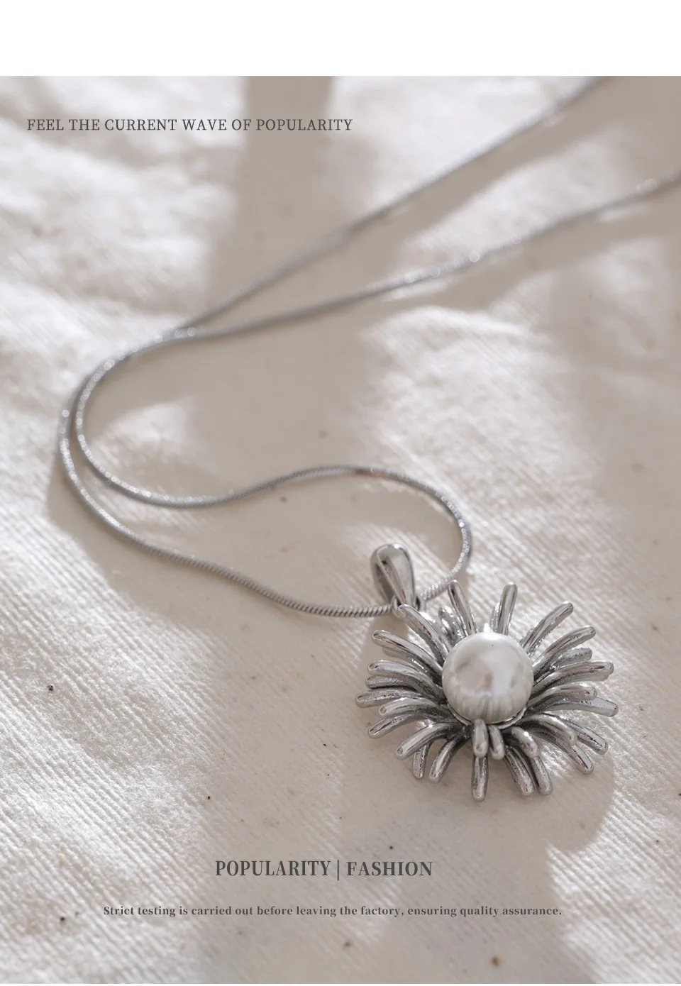 NiNice Stainless Steel Necklace Sunflower Imitation Pearl Pendant Design Trendy Selected Jewelry Gift New Wholesale