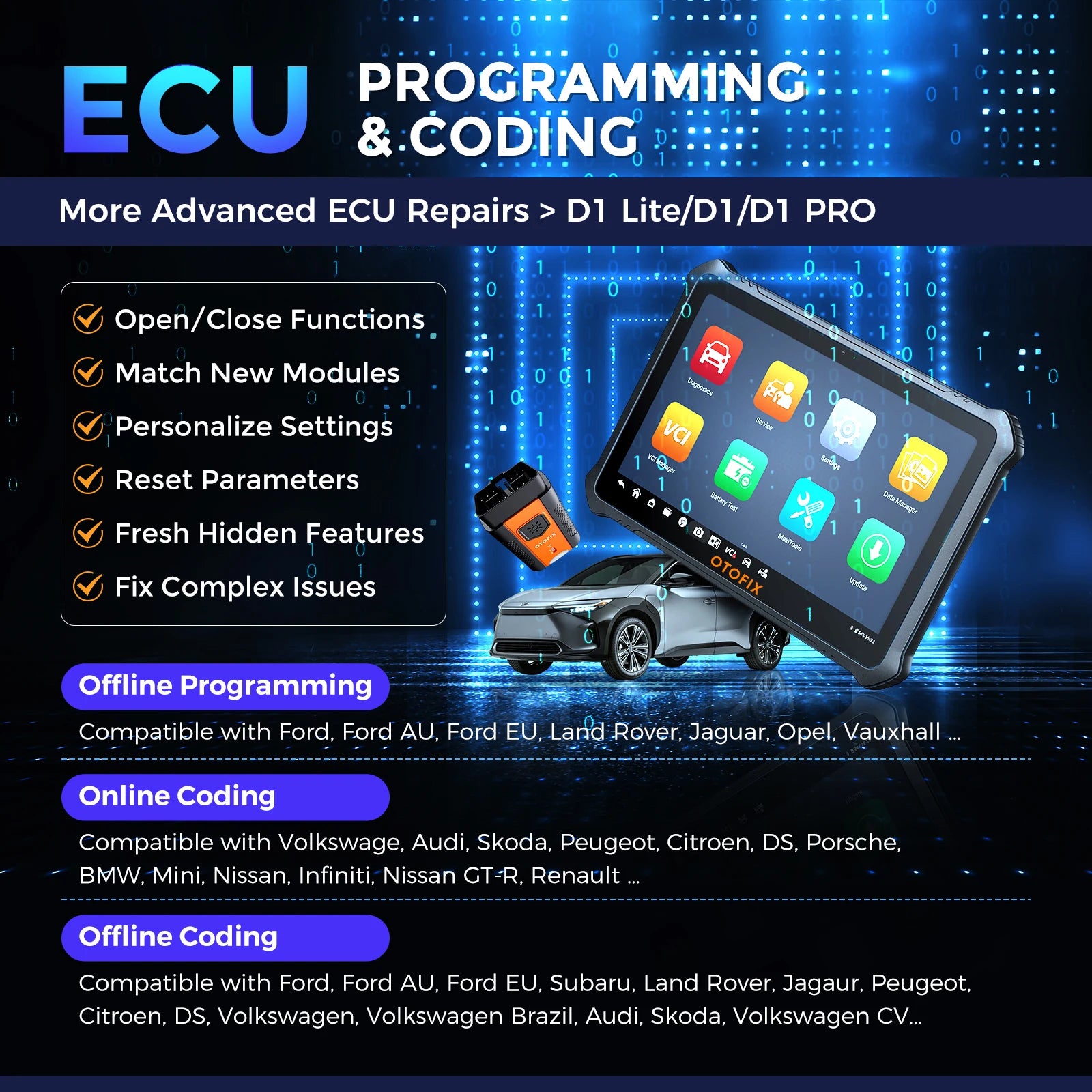 ● Advanced E-CU Coding: Unlock the Hidden Functions for customization, Coding Components after repair or replacement, Improve Fuel Efficiency, Activate high-end functions.