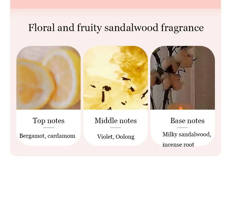 White Peach Cream:Peach Freesia, Osmanthus, Roasted Cocoa.