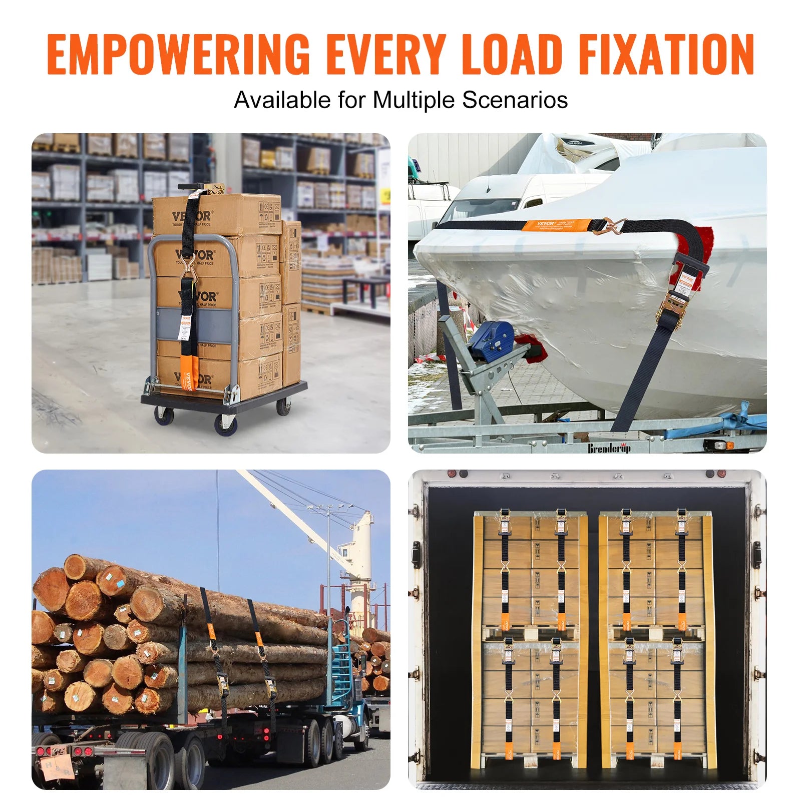 SucceBuy 4pcs 2/4/8M Ratchet Strap Tie Down Cargo Belt with Metal Buckle Tensioner Strong Lashing for Luggage Car Motorcycle