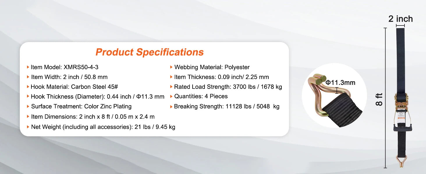 Powerful 11128 lbs Breaking Strength: The webbing is made of high-quality material with additional stitching, providing unbeatable performance even when handling heavy loads in strong winds. Each ratchet has an official load capacity of 3700/5000/10000 lbs and a breaking strength of up to 11128 lbs, but trust us, they are even stronger!